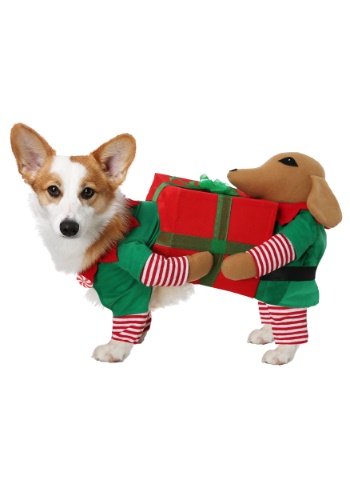 Dress your little furry bundle of joy in this exclusive Santa’s Little Helper Dog Costume for the holidays. This costume creates the illusion of your dog carrying a wrapped present.